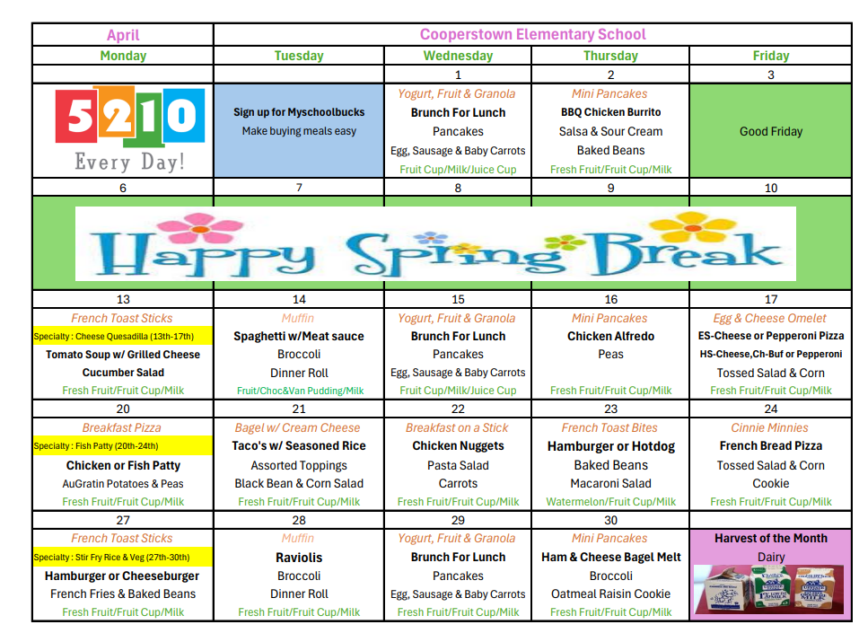 April Elementary & Jr-High Menus