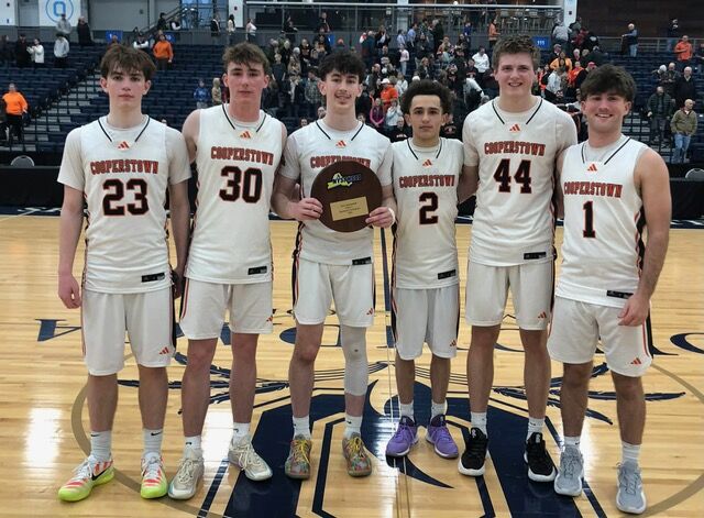 SYRACUSE – Congratulations to the Cooperstown boys varsity basketball team, who defeated Elmira Notre Dame by a score of 60-57 in the quarterfinals of the Class C New York State Public High School Athletic Association (NYSPHSAA) Championship Tournament on Sunday at Onondaga Community College’s SRC Arena in Syracuse.