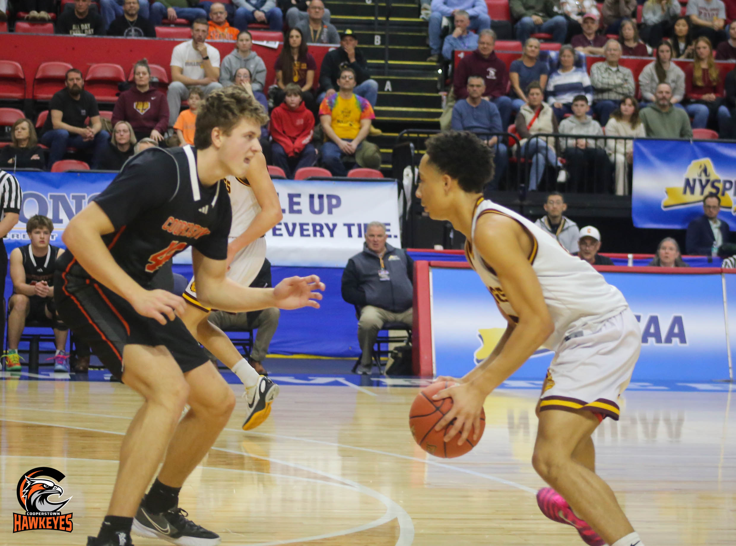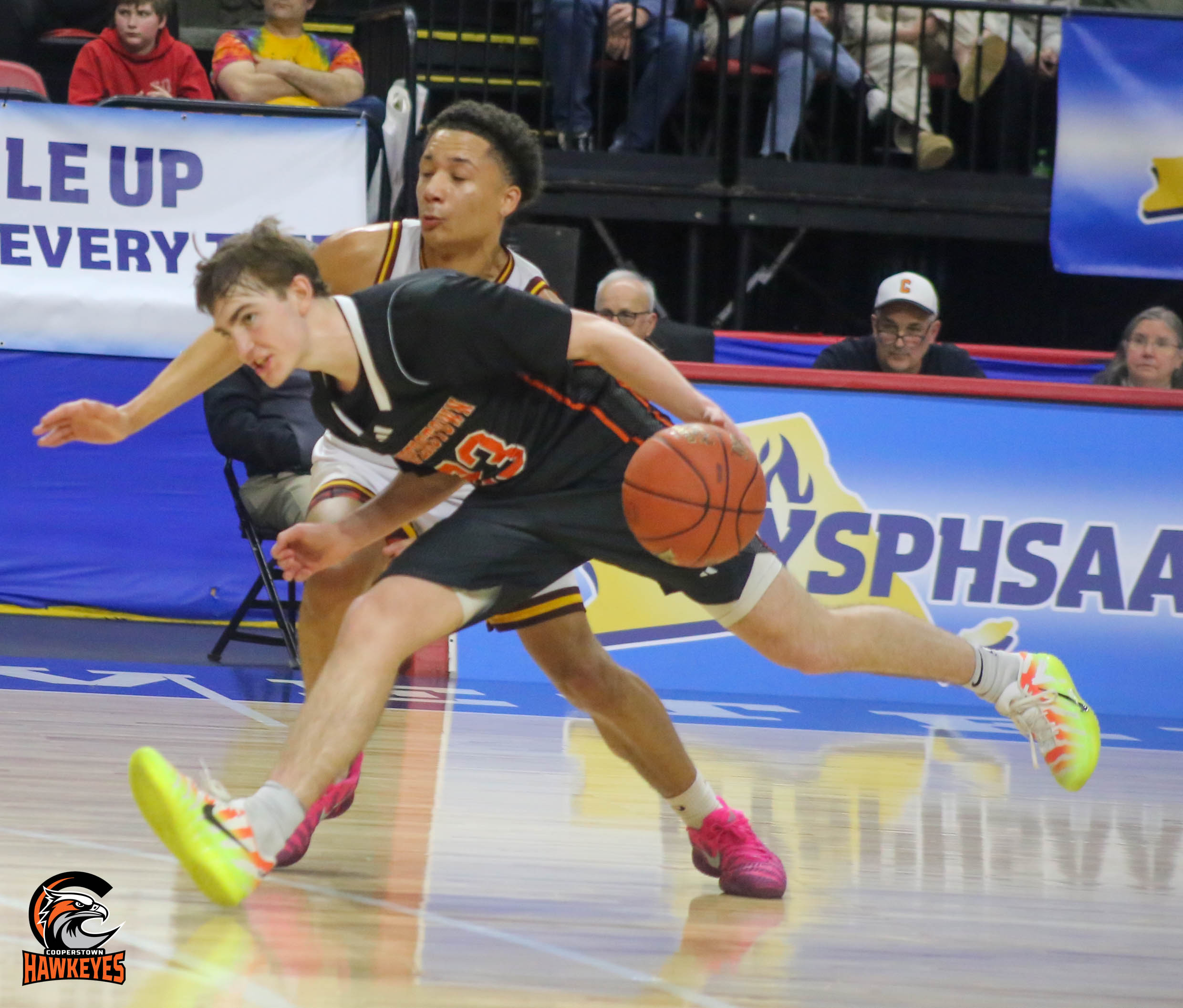 After the defending champs scored 100 points in Saturday’s Class C semifinal, the Hawkeye defense held Berne-Knox-Westerlo to just 43 points in Sunday’s championship game, helping secure the state title for Cooperstown with a 52-43 victory.